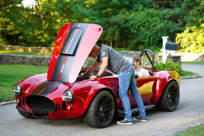 When I got home I didn’t waste a second before I ripped the cover off my Cobra. When I was nearing the end of my street I saw another Factory Five come around the corner. Low and behold, it was my dad! We stopped for a moment and talked. Then he turned around, and we continued together for a cruise before dinner.