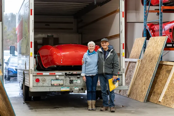 The week ends with strong representation from our Canadian customers! From Montreal, Gilles L. and his wife made the trip to Wareham to pick up their Mk4 Roadster kit yesterday. Today, Coupe-R owner and Ontario resident Kirk M. drove the distance to visit, check brake measurements and score a set of 18” Halibrand wheels for his Coupe. Dave Smith gave him an additional 18″ Halibrand rim for free since he made the long 10 hour drive! Now he’s got a spare for the rear deck or a new rim in reserve in case of curb rash. Last, but not least, Jason R. and his wife, who are currently building their FFR ’35 Hot Rod Truck, stopped in to grab a grille for their project and catch up with the crew.