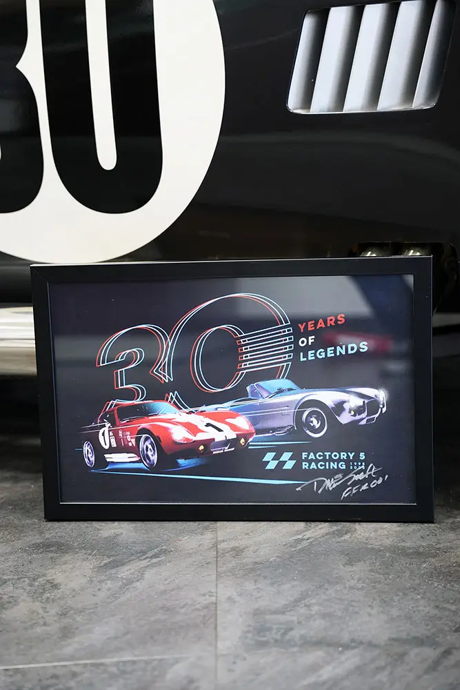We made these limited edition 30th Years of Legends posters for our Open House this past spring. They are signed by Factory Five President Dave Smith, and measure 17″ x 11″.