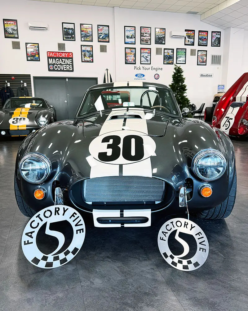 With your Anniversary Coupe order, you will have the chance to join us at the 2026 SEMA Show in Las Vegas held next year from November 3rd to the 6th! You will get to work the booth, and hang with the crew as a part of the Factory Five SEMA team! Includes 2 exhibitor tickets, and $1,000 airfare credit. 🎉