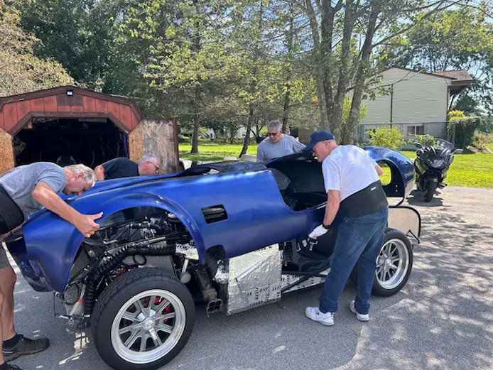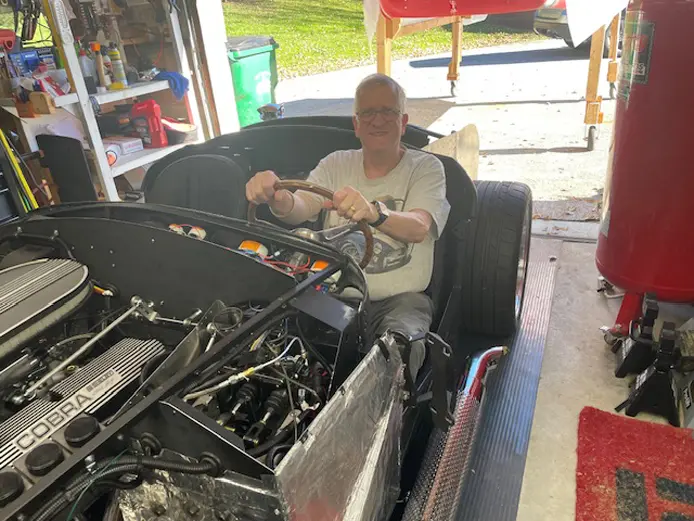 Factory Five Customer Charles K. who recently graduated his Mk4 Roadster says, “I am dedicating my build to my friend, Larry Mesic, who supported my dream and lived to celebrate the day my kit was delivered on May 1st, 2022, before passing shortly thereafter due to pancreatic cancer.”