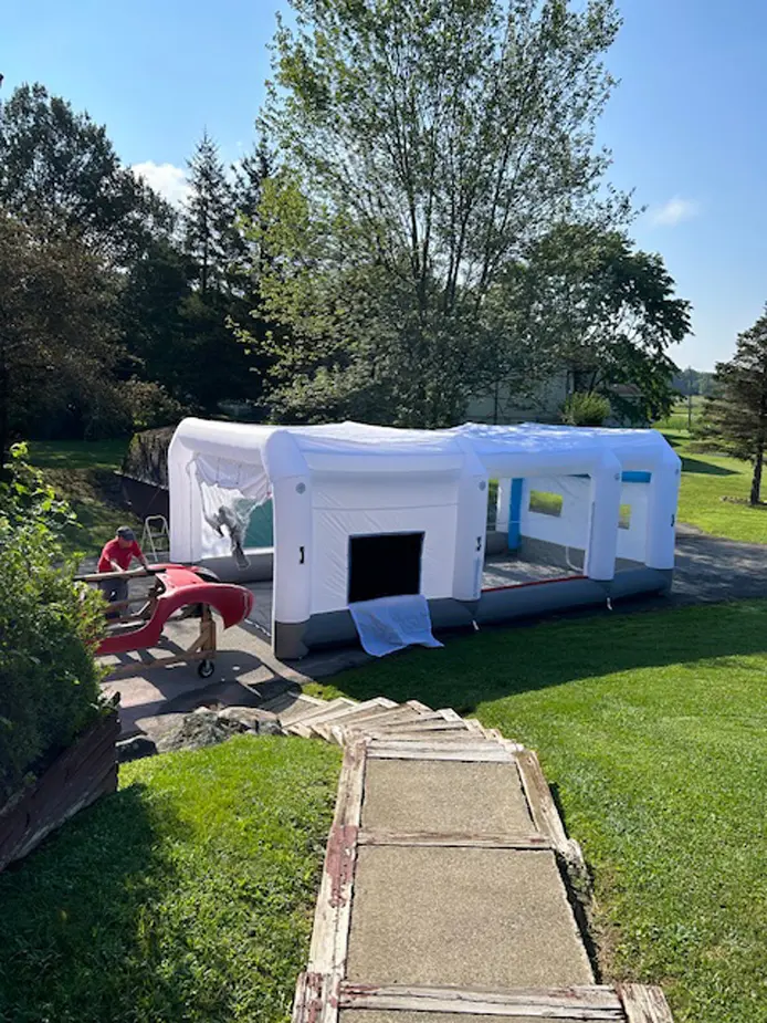 The kit’s delivery by Eric from Stewart Transport, was bittersweet. His friend, Larry Mesic, who always supported his dream, lived to see the day the car was delivered, even though he was very sick. As Charles mentioned, he dedicated his build to his good friend Larry.