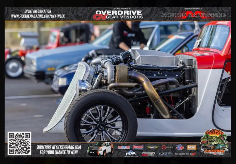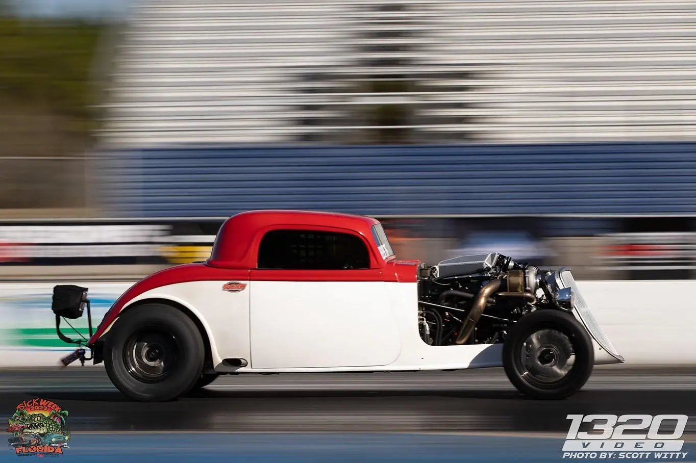 Sick Week was even sicker with Chris Hein’s Factory Five ’33 Hot Rod. Chris ran a drag time of 8.904 seconds at 156.46 mph down in Florida during the Sick Week races. Chris even did some interviews for Sick the Mag and 1320 Video, as well as Engine Builder Magazine.