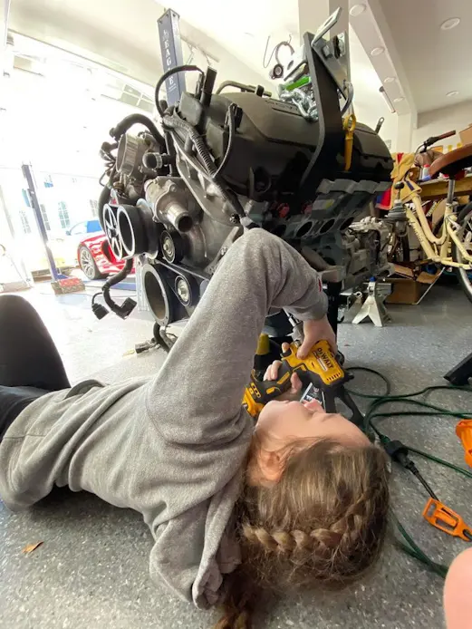 Emerson M. and his daughter, Julia decided to build a Factory Five Type 65 Coupe car as part of her senior project for high school. He says, “It also coincided with COVID, so it became a COVID project. We started the build in the summer of 2020, and the first start of the engine was about one year later.”