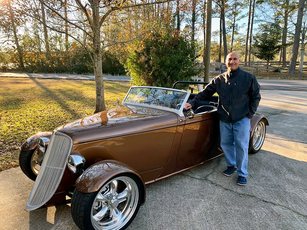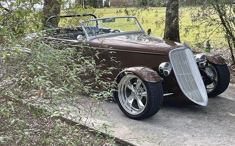 “Prior to this build, my wife and I would go to the local car shows and inevitably when she would ask which one was my favorite, my response was always the same, “The Cobra of course!” At some point I sent for a brochure and purchased the build manual for the Factory Five Roadster. When we decided to go forward with this project, we decided it would be a good idea to attend the build school since I had no previous experience with cars other than driving them. Over the course of the weekend every time we had a break, I would find myself over in the far corner of the building drooling over the partially assembled Factory FIve ’33 Hot Rod. As soon as I got home and shared this with my wife, we decided to order the ’33 Hot Rod kit.’