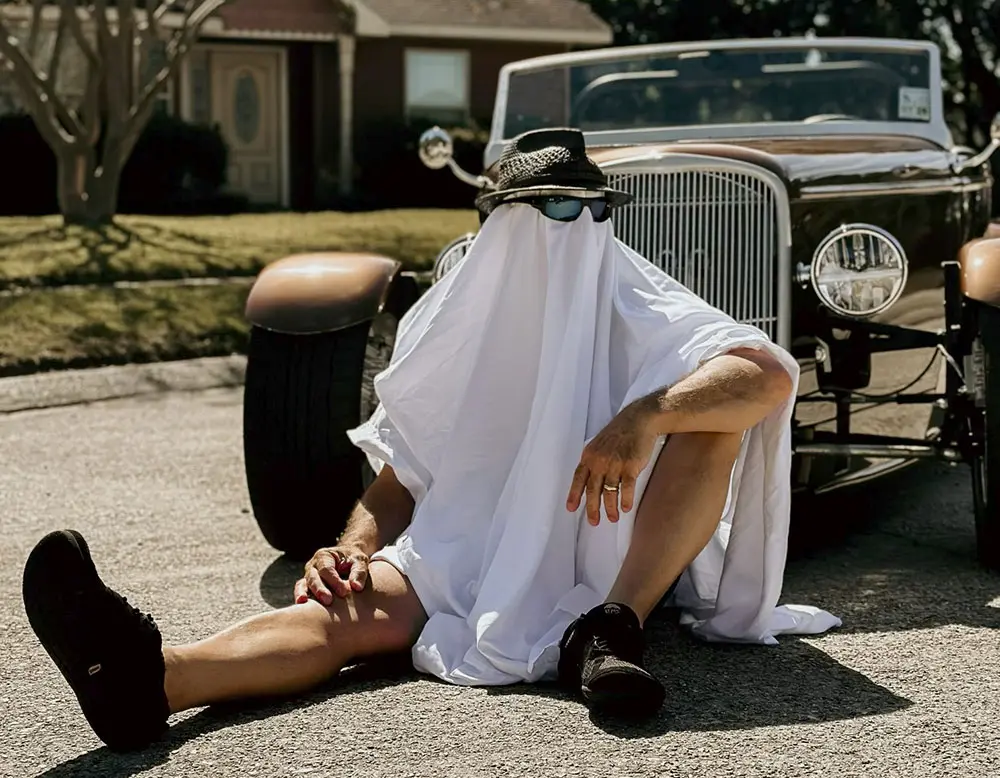 A ghost and his Factory Five Hot Rod make for a great Halloween!