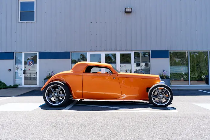 “For the remainder of 2023, I worked on fitting the body panels and preparing the body for paint. Although I initially planned to paint the car myself, my wife insisted on having it professionally done. I dropped the car off at Coffey’s Rod and Custom in Kingston, MA, in January 2024. The paint job, in a breathtaking Sunset Orange Pearl, was completed in early April. I spent the rest of April and May finishing the final assembly.”