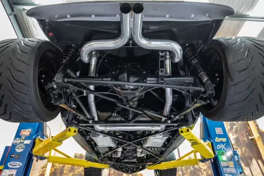 Llewellyn’s hot rod, the first of its kind in New Zealand, is not just about looks—it’s about performance too. Powered by a bespoke LS3 416ci engine built by Wegner Motorsports, it’s packed with high-end components like a forged 4340 crank and Mahle pistons. This powerhouse is capable of pulling incredible g-forces through the corners, thanks in part to its “inboard cantilever suspension” system paired with Koni coilovers, and a lightweight design that tips the scales at just 1,100kg.