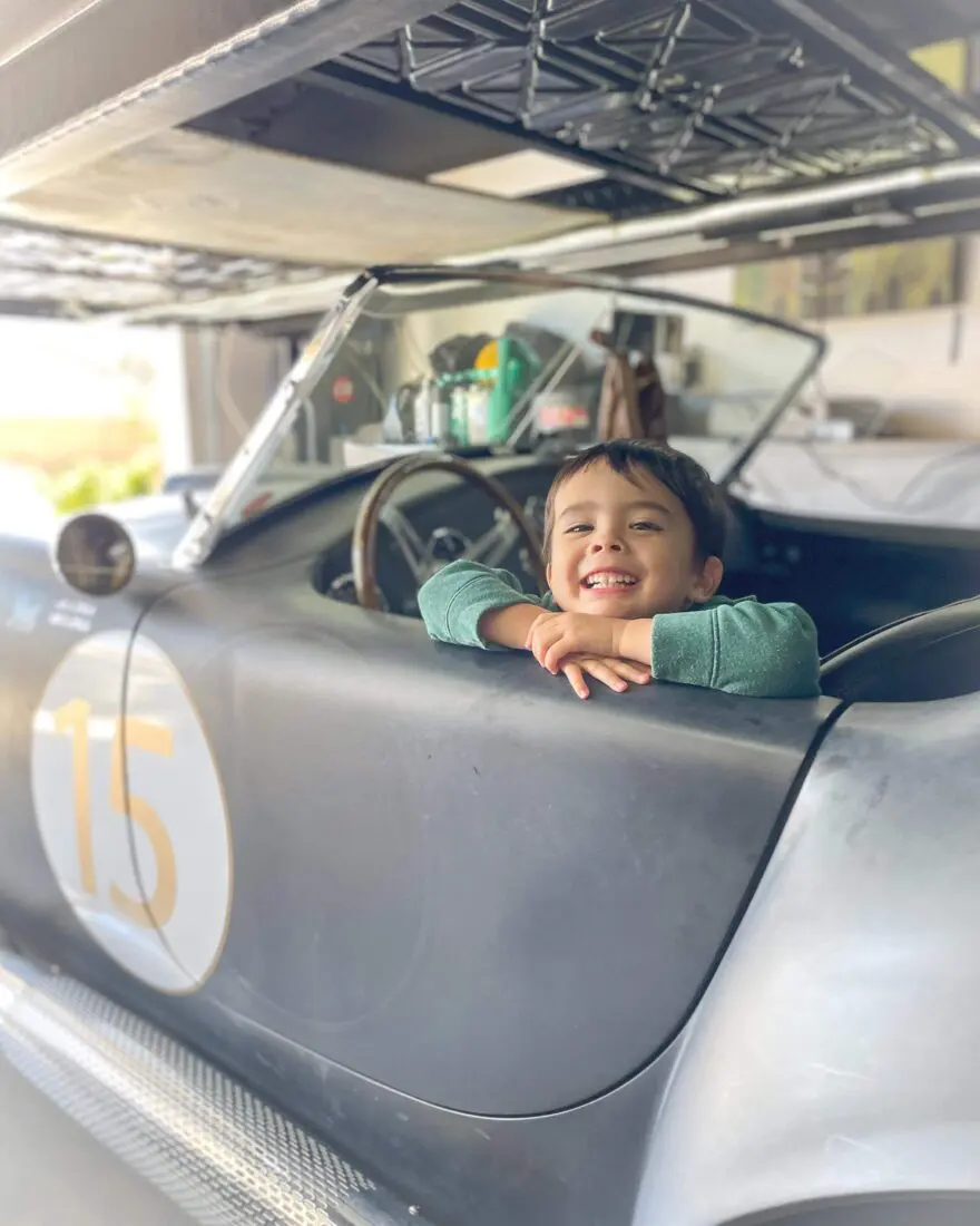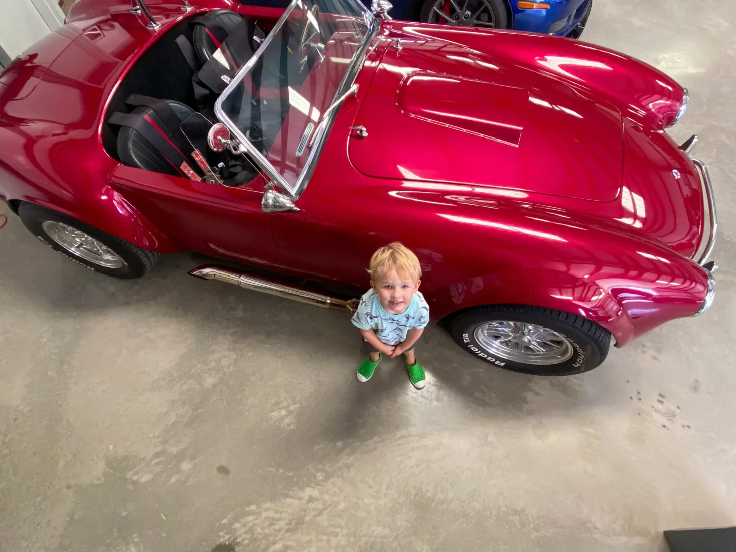 Nick Arnold’s son enjoys “driving” his Factory Five Roadster with a soon-to-be 427W engine, (happy belated 427 day!) from BluePrint. It has Wilwood brakes, and IRS. Nick captioned the photo of his son, “Think we got a gear-head in the family.”