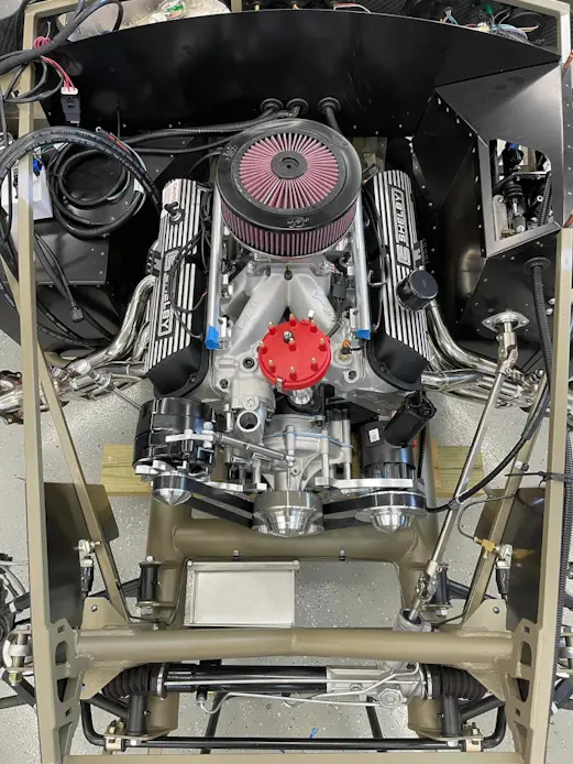 Though he had built one car before —a 1995 Everrett-Morrison kit— his Factory Five was different. “I’m so happy with the quality of Factory Five’s build! My previous Cobra’s cockpit was all chopper-gun fiberglass, heavy, spongey, and built like a boat. I love how thought out and engineered the Factory Five is. I enjoyed the build process and the community support between helpful videos, various threads on the Factory Five Forum and groups. Also, I think I have saved every one of Jeff Kleiner’s posts of his finished painted Cobras for color ideas.”
