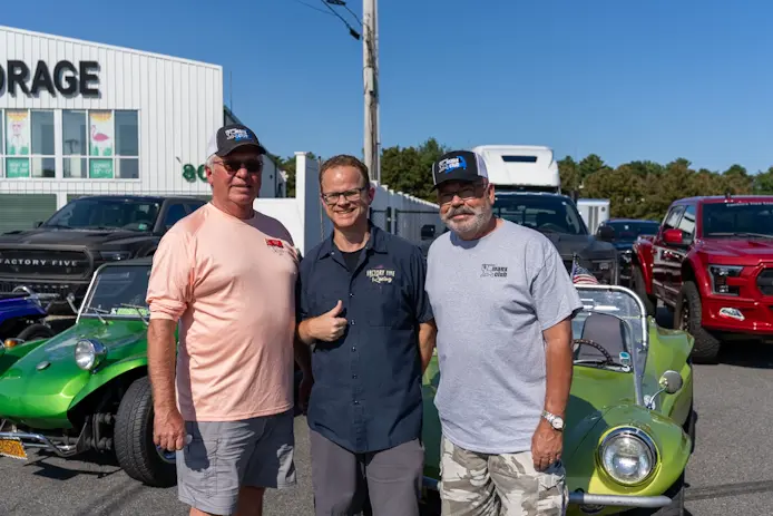 We had an awesome afternoon hosting the Manx Club at Factory Five, with about 40 Manx cars joining our XTFs in the front lot and over 100 people in attendance! Many club members drove back with some Factory Five garb to show off.
