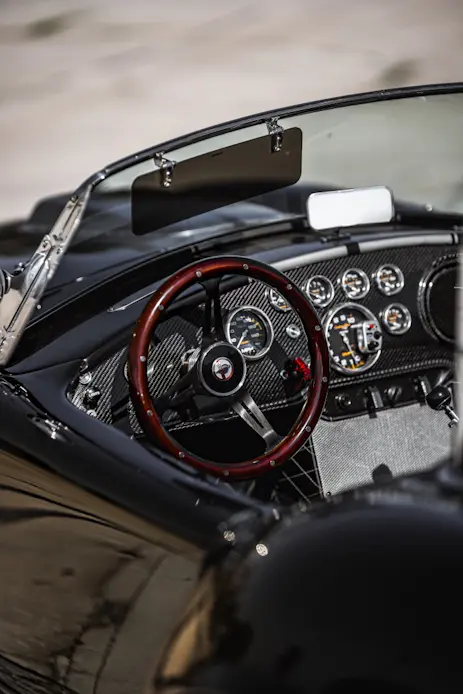 Inside of the car, custom barrel back seats, a 15” matte black Forever Sharp steering wheel, and 7 AutoMeter carbon fiber gauges offer style, comfort and information at your fingertips. Pietro’s Factory Five Mk2 Roadster is truly one-of-a-kind. Happy birthday Pietro, and congratulations on your beautiful build!