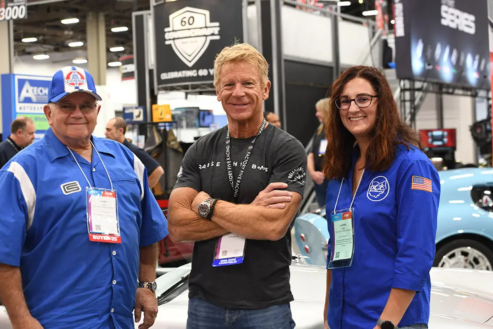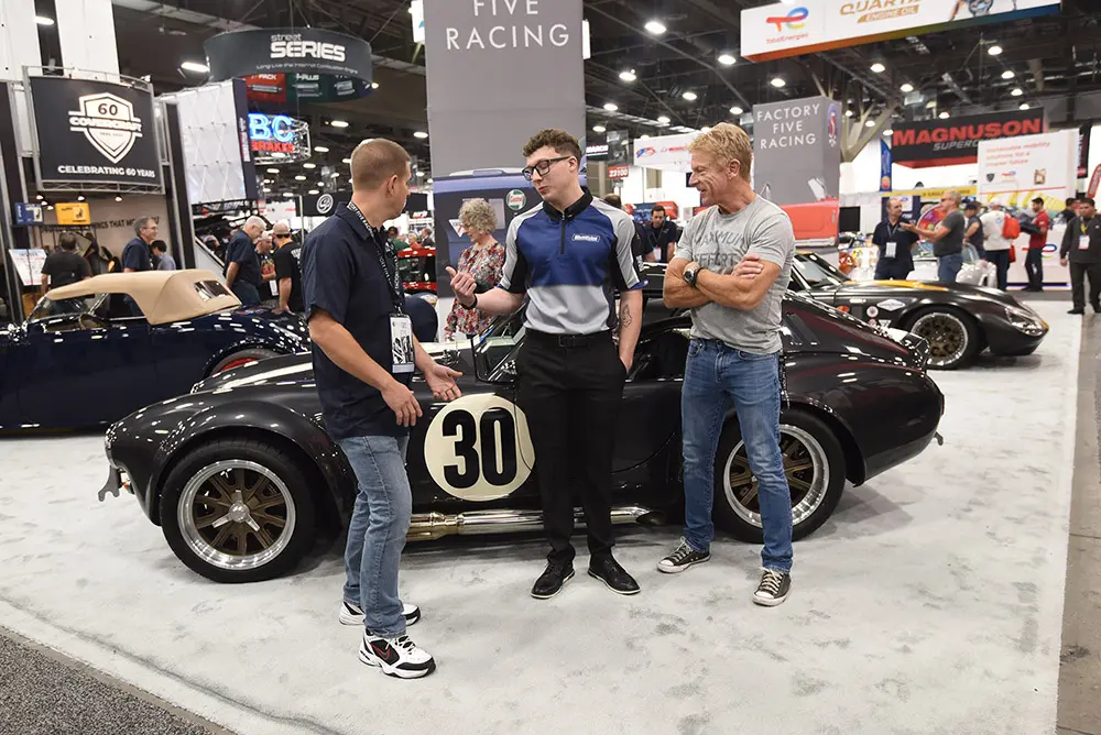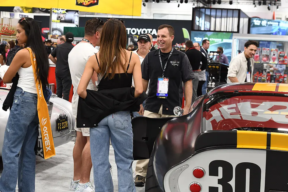 Dave Smith was on hand for Day 2 of SEMA! Cristy Lee stopped by the booth midday, and Stacey David even got behind the wheel of the Mk5! He said, “Finally, a Cobra you can actually fit in!”