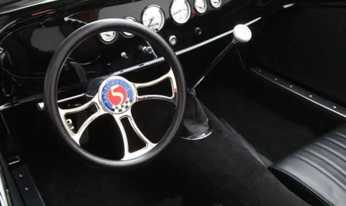Factory Five Racing Operations Manager Nate Johnson built this ’33 Hot Rod for his dad. The car is powered by a fuel-injected Ford Racing 302 GT-40 engine producing 340 HP. Nate built the car as a street car so it is equipped with an optional removable soft top. The car is a standard build with our optional 3-link rear suspension and Wilwood brakes. Notice the 20″ rear and 17″ front wheels which are BRAND NEW Factory Five optional wheels (coming to the parts catalog soon).